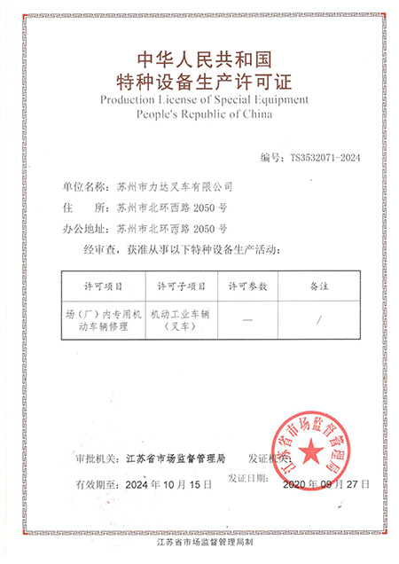 特種設備生產許可證