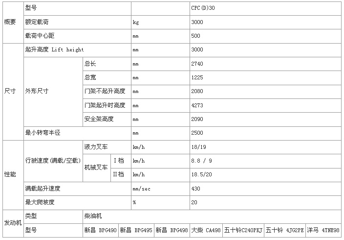 S系列CPC(D)30內(nèi)燃平衡重式叉車